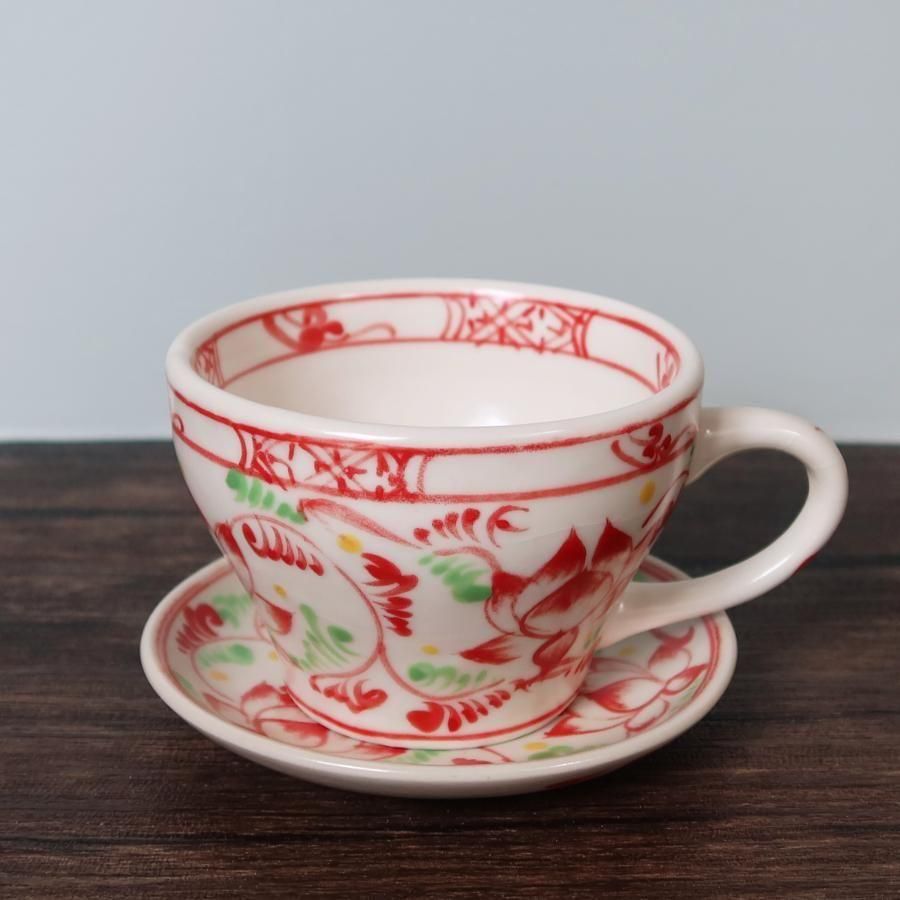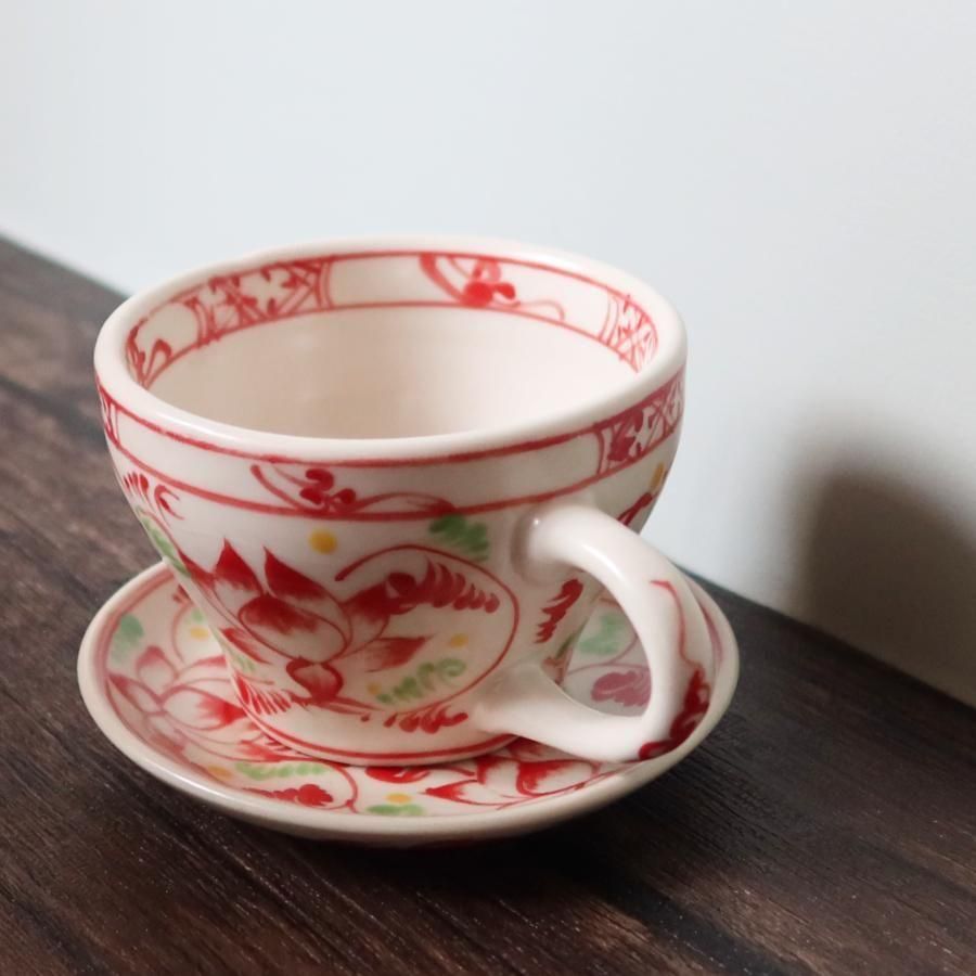 カップ&ソーサー クラシック・レッド(バッチャン焼き/ベトナム)