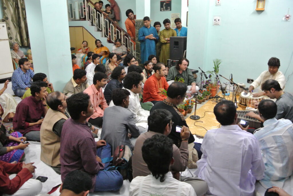ちなみに私がかつて滞在していたインドのコルカタでは、毎年2月にサラスバティー・プージャと呼ばれるお祭りがありました。ご存じの通りたくさんの神様が存在するヒンドゥー教ですが、その中でも音楽や芸術の神様といわれるサラスバティーはとりわけ音楽家たちからの信仰が厚く、その日は著名な演奏家と弟子たちで朝からホームパーティーを行います。